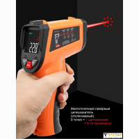 | Особенности | Инфракрасный пирометр для бесконтактного измерения температуры. Регулируемый коэф. излучения 0,10…1,00. Регистрация МАКС/ МИН/ СРЕД значений, удержание показаний (HOLD). Функция Hi/Low - допусковый контроль температуры с акустической и визуальной сигнализацией. Режим SCAN- непрерывное сканирование температуры (блокировка запуска измерений). Лазерный целеуказатель многоточечный (9 точек = 1 центр. + 8 окружность S), отключаемый (5…14 мкм). ЖК-дисплей 28 х 28 мм. Скорость отклика при измерении температуры 500 мс. Автоматическое выключение питания. Размеры 95 х 155 х 40 мм, масса 160 г. |