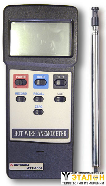 Анемометр АКТАКОМ АТТ-1004 работает по принципу охлаждения воздушным потоком нагретой нити. В качестве датчика в анемометре АТТ-1004 используется миниатюрный стеклянный термистор, он размещается в малогабаритной измерительной головке диаметром 12 мм на телескопической ручке. Такой датчик обеспечивает быстрые и точные измерения даже при низком значении скорости движения воздушного потока, а также позволяет проводить измерения в труднодоступных местах. Анемометр АКТАКОМ АТТ-1004 отображает измеренные значения во всех принятых единицах измерения (м/с, км/ч, футы/мин, узлы, мили/час). Последнее, максимальное и минимальное измеренные значения могут сохраняться в памяти автоматически. В анемометре АКТАКОМ АТТ-1004 имеется интерфейс RS-232, что позволяет передавать результаты измерений в компьютер.