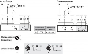 Номинальное напряжение 230 В или 24 В. Управление: откр./закр. , трехпозиционное управление