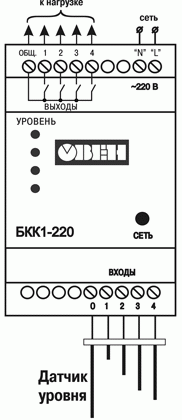 Новый прибор ОВЕН БКК1 линейки сигнализаторов уровня САУ, четырехканальный аналог САУ-М6 в DIN-реечном исполнении.