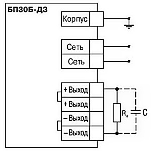 Примечание. При длине проводов между блоком и нагрузкой более 1 м и отсутствием на входе нагрузки входных конденсаторов рекомендуется параллельно нагрузке подключить керамический конденсатор емкостью не менее 0,1мкФ и напряжением ≥1,5 Uвых применяемого блока.