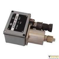 В чувствительную систему входят узел сильфона и корпус. Передаточный механизм состоит из штока и рычага, вращающегося на оси. Переключатель имеет два неподвижных контакта и один подвижной. Контролируемое давление создается в полости между корпусом и сильфоном. Узел настройки состоит из пружины, винта и резьбовой пробки. Уставку настраивают винтом.