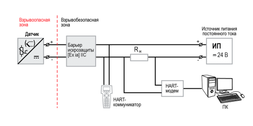 Схема передачи цифрового сигнала от датчика к устройствам, поддерживающим HART-протокол