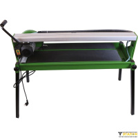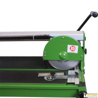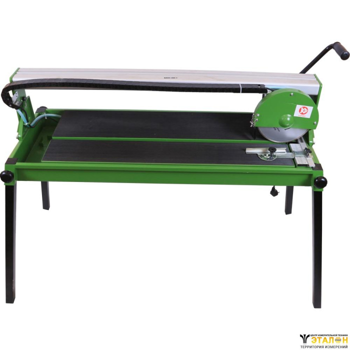 Электрический плиткорез со столом Калибр ЭПЛ-230/920СТ предназначен для резки с водяным охлаждением всех видов натуральной и искусственной керамической, облицовочной, напольной и тротуарной плитки алмазным кругом под прямым углом и углами до 45°. Головка режущая (кронштейн с двигателем, блоком управления и отрезным кругом), перемещаясь по салазкам вдоль рабочего стола, осуществляет подачу рабочего инструмента для реза. На кронштейне закреплён шланг, подающий насосом воду из поддона на отрезной круг и заготовку для охлаждения, во время работы. Резиновый шлангоукладчик обеспечивает дистанционирование шланга от рабочей зоны круга и перемещение его вместе с головкой режущей.