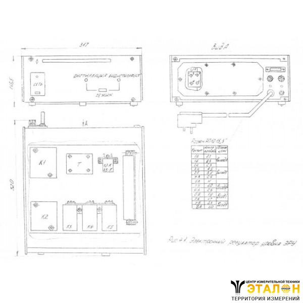 Регуляторы ЭРУ состоят из каркаса, панели передней, панели задней и шасси. На передней панели расположены переключатель сети и индикатор с общим названием «Сеть». Здесь же расположены переключатель «Режим» и индикаторы «дистилляция» и «бидистилляция». На задней панели ЭРУ расположены предохранители, закрытые крышкой, два предохранителя, разъем для подсоединения регулятора к регулируемому объекту.