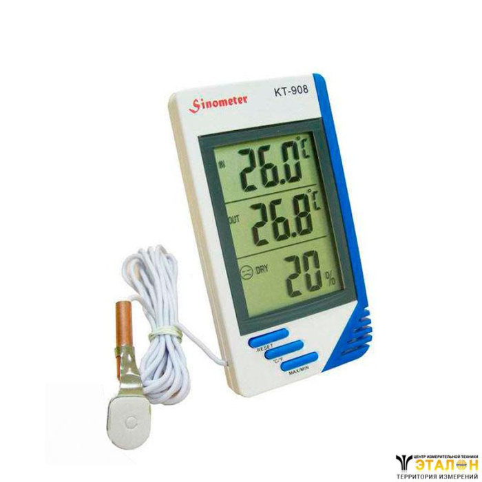 Гигрометр-термометр КТ-908 с быстросъемным дополнительным выносным датчиком температуры предназначен для измерения влажности и температуры внутри помещения, а также, посредством выносного датчика, температуры снаружи помещения. Широко используется в складской отрасли, в сферах хранения продуктов питания и переработки сельхозпродуктов.