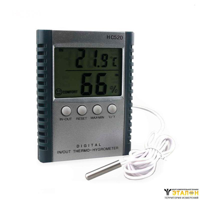 Гигрометр-термометр НС-520 предназначен для измерения влажности внутри помещения и температуры внутри и снаружи помещения. Широко используется в складской отрасли, в сферах хранения продуктов питания и переработки сельхозпродуктов.