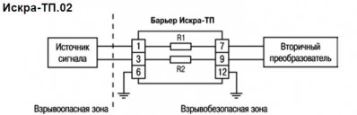 • ИСКРА-ТП.02 – барьер искрозащитыдля термопар и датчиков с выходным сигналом напряжения –1...+1 В:
