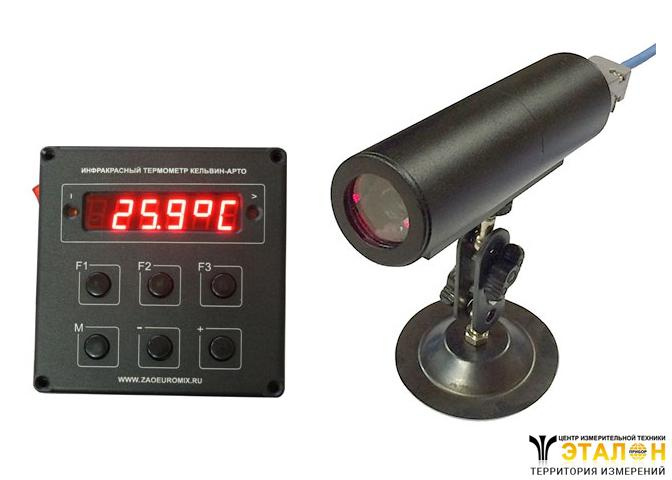 ИК-пирометр Кельвин-АРТО является стационарным измерителем температуры для промышленного применения в прочном металлическом корпусе. Имеет двухблочное исполнение: пульт управления, ИК-датчик, соединительный кабель 3 м, выход RS 232, токовый выход, установка коэффициента излучения, установка порога, контакты реле для управления исполнительными устройствами.