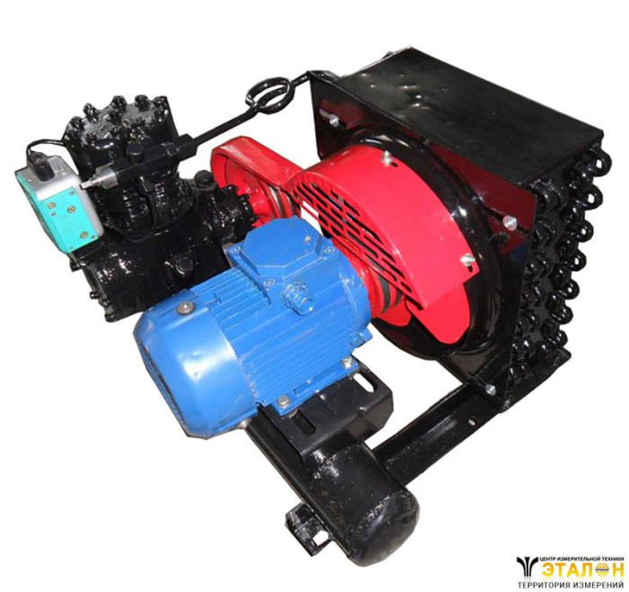 Холодильный агрегат включает компрессор, электродвигатель, конденсатор воздушного охлаждения, ресивер, фильтр, запорную арматуру.