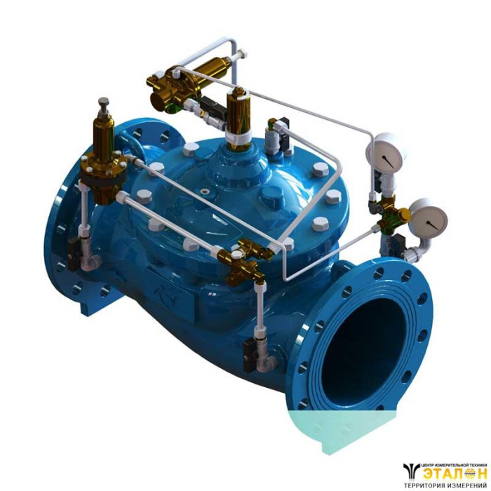 Регулируемый, по умолчанию открытый, пилотный клапан (6) реагирует на изменения давления ниже по течению, для поддержания заданного давления на выходе. Если давление на входе упадет ниже заданного значения, контроль берёт на себя пилотный клапан поддержания давления.