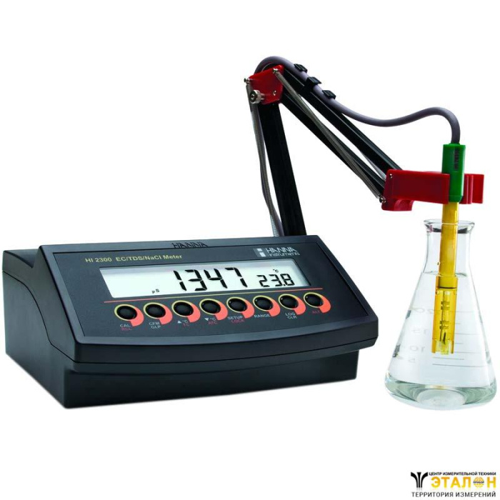 Кондуктометр HI 2300 выполняет измерение EC, TDS (общее содержание растворенных твердых веществ), NaCl и температуры. Для проводимости и TDS в диапазоне до 500 мСм/см и 400 г/л соответственно, прибор автоматически выбирает оптимальный диапазон для поддержания высокой точности.