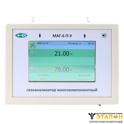 Многокомпонентный газоанализатор МАГ-6 П-У (О2, СО2) предназначен для измерений объемной доли кислорода, диоксида углерода внутри упаковки (концентрация азота отображается расчетным методом). Газоанализатор выполнен в специальном исполнении, для измерения внутри упаковки и может применяться в различных технологических процессах в промышленности, энергетике, сельском хозяйстве и других отраслях хозяйства.