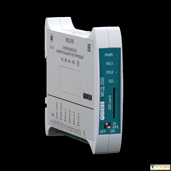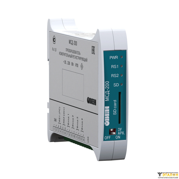 Модуль сбора данных ОВЕН МСД-200 применяется для опроса\прослушивания приборов, модулей ввода, контроллеров имеющих возможность передавать данные в сеть RS-485. Производит архивирование данных полученных с 64 точек измерения на карту памяти SD.