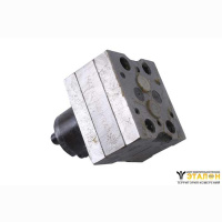 Насос представляет собой блок пластин, в средней из которых вращаются две сцепляющиеся между собой прямозубые цилиндрические шестерни с одинаковым числом зубьев.