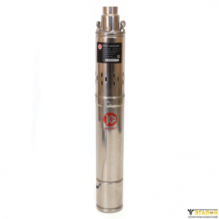 Насос погружной центробежный скважинный Калибр НПЦС-1,8/65-600 предназначен для подачи воды из скважин диаметром от 75 мм и более в бытовых условиях. Насосом можно подавать воду из шахтных колодцев, резервуаров и открытых водоёмов для полива садов и огородов. Возможно использование для понижения уровня грунтовых вод. Насос эксплуатируется полностью погруженным в перекачиваемую жидкость. Насос имеет небольшой диаметр, что позволяет размещать его в достаточно узких скважинах. Токовое реле оснащено кнопкой принудительного перезапуска. Двигатель и насос расположены в нержавеющем корпусе (рис.1 поз.5). Насос приводится в действие однофазным асинхронным двигателем переменного тока.