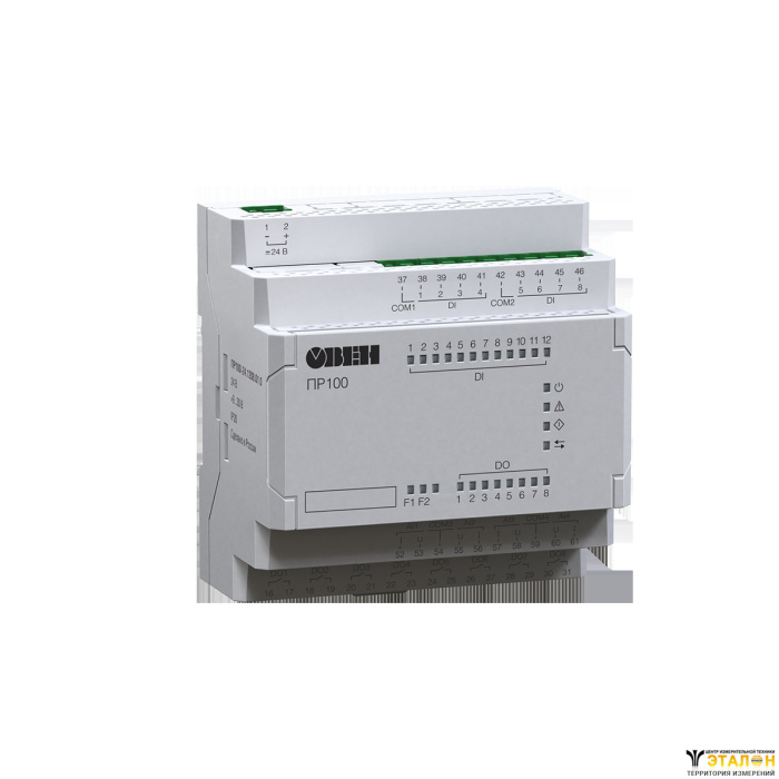 Прибор изготавливается в автоматном корпусе 5 DIN. Имеет на борту аналоговые и дискретные входы, а также дискретные выходы. Для управления устройствами по сети или передачи данных на верхний уровень в приборе предусмотрен интерфейс RS-485.