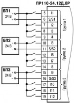Подключение к ПР110-х.12х.8х дискретных датчиков с выходом типа «сухой контакт»