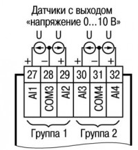 • 4 аналоговых входа 4…20 мА, 0…10 В, 0…4 кОм. Могут работать в режиме дискретного входа.