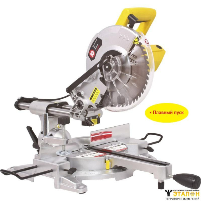 Пила торцевая (торцовочная) электрическая Калибр ПТЭ-1900/255ПРм предназначена для выполнения прямых, боковых и косых распилов и резов в древесине, ДСП, ДВП, пластмассах. Заготовка на рабочем