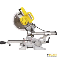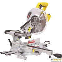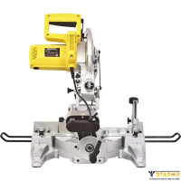 столе может быть повёрнута на угол от 0 до 45° за счёт поворотного основания. На основной рукоятке пилы расположены: рычаг блокировки защитного кожуха и клавиша выключателя. Конструкция пилы позволяет осуществлять: распиловку материала под заданным углом от 0 до 45° относительно задней кромки заготовки в обе стороны, заданным углом от 0 до 45° относительно вертикальной оси влево и продольного пиления при перемещении вдоль направляющих. На суппорте вертикального перемещения пилы расположен блок лазер, подсвечивающий линию реза при пилении. В комплект поставки входят: пылесборник, щётки графитовые, а также дополнительные опоры для распиливания длинных заготовок.