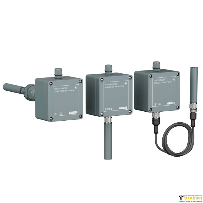 Промышленный датчик влажности и температуры ОВЕН ПВТ100 предназначен для непрерывного преобразования относительной влажности и температуры неагрессивного газа в два унифицированных выходных сигнала 4…20 мА и передачи измеренных значений по интерфейсу RS-485 (Modbus RTU).