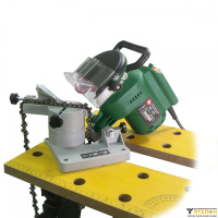 Электрический станок для заточки цепей Калибр ЭЗС-250 предназначен для заточки цепей для цепных электрических и бензиновых пил. В основании имеются монтажные отверстия для крепления станка на рабочем столе (верстаке). На корпус двигателя крепится рукоятка, для удобства управления абразивным кругом. Установленный в станке коллекторный двигатель с двойной изоляцией , обеспечивает максимальную электробезопасность при работе и не требует заземления. Для защиты оператора станок оснащён защитными устройствами: кожухом, закрывающим более 60 % абразивного круга и подвижным пластиковым экраном.