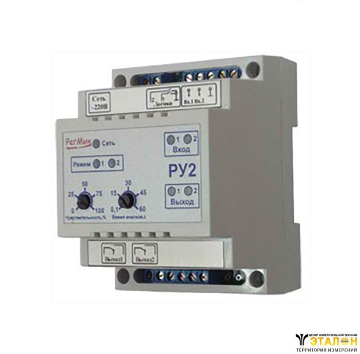 Регуляторы-сигнализаторы уровня двухканальные (РУ2) применяется для создания систем с автоматическим заполнением или осушением резервуара по гистерезисному закону. Ко входу 1 подключают датчик верхнего уровня, а к входу 2 датчик нижнего уровня.