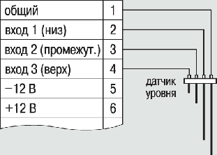 Схема подключения датчиков уровня