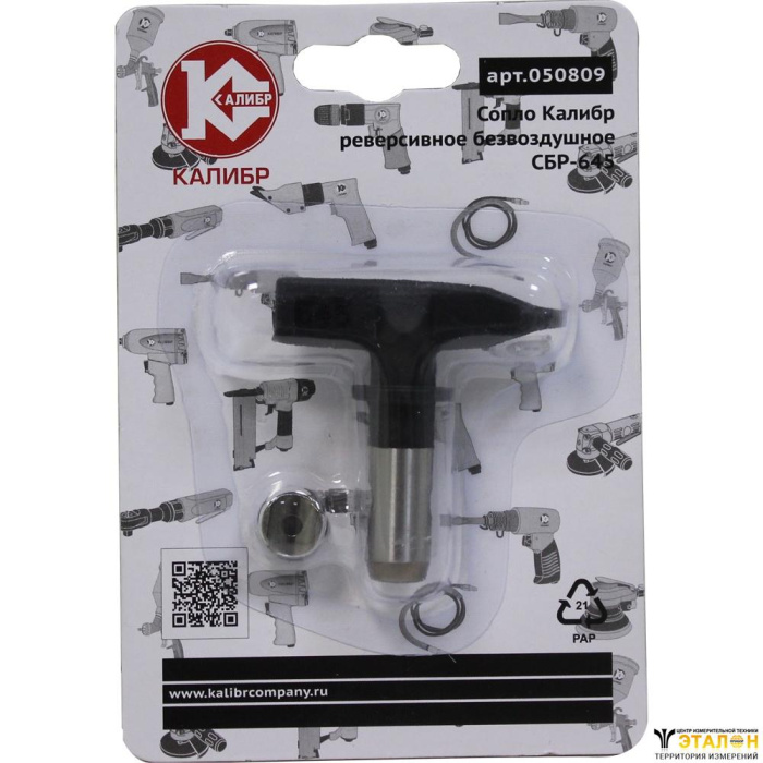 Безвоздушное реверсивное сопло Калибр СБР-645 , предназначено для использования на краскораспылителях высокого давления. Сопло используется на краскораспылителях с максимальным давлением до 350 бар.Чем более широкий угол распыления краски, тем более широкие изделия можно окрашивать, если факел узкий, то проще красить малогабаритные изделия. Два положения работы сопла: распыление и очистка.