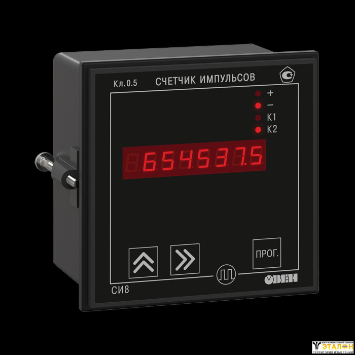 Микропроцессорный счетчик импульсов СИ8. Используется для подсчета количества продукции на транспортере, длины наматываемого кабеля или экструзионной пленки, сортировки продукции, отсчета партий продукции, суммарного количества изделий и т.п. Встроенный в СИ8 таймер позволяет использовать прибор в качестве счетчика наработки, расходомера или для определения скорости вращения вала.