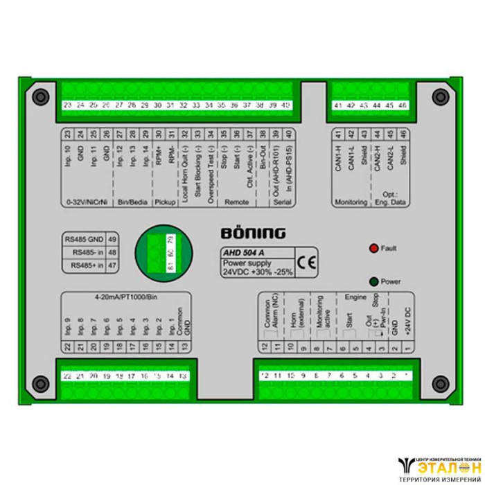 Система аварийной сигнализации AHD 504 A/AHD 514 A имеет 14 входов для аналоговых или дискретных сигналов, один вход для сигнала частоты вращения двигателя, 3 дискретных входа и 6 управляющих выходов. По всем входам могут быть заданы уставки срабатывания с формированием соответствующих аварийных сигналов.