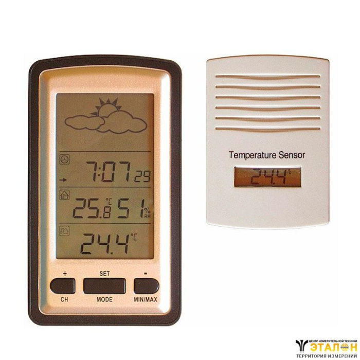 Станция температуры и влажности KG218 с беспроводным (до 100м) радиодатчиком температуры предназначена для измерения влажности и температуры внутри помещения, а также, посредством выносного радиодатчика, температуры вне помещения.