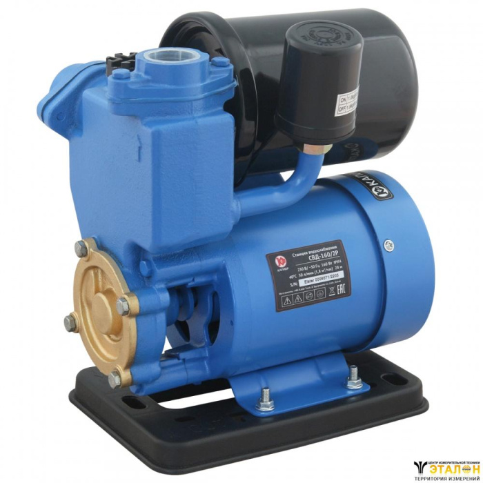Станция автономного водоснабжения Калибр СВД-160/2Р предназначена для создания автономной водопроводной сети (с максимальной температурой 40°С) в которой давление воды поддерживается в автоматическом режиме. Станция может применяться для организации водоснабжения, полива газонов, орошения садовых участков и для откачки воды из ёмкостей, бассейнов и т.п. На якорь двигателя крепится металлическая крыльчатка. Вращающееся с высокой скоростью рабочее колесо (крыльчатка) повышает давление воды в гидроаккумуляторе, реле давления при достижении заданного давления отключает насос. Для защиты двигателя от перегрева, в обмотку статора встроено тепловое реле.