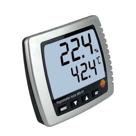 ТермогигрометрTesto 608-H1 — это доступный и надежный прибор для непрерывного измерения влажности, температуры и температуры точки росы. С его помощью можно легко контролировать микроклимат в помещении. Прибор оснащен большим дисплеем, что позволяет удобно считывать данные измерений с дальнего расстояния. Testo 608-H1 также запоминает максимальные и минимальные значения, что облегчает мониторинг изменений в условиях окружающей среды.