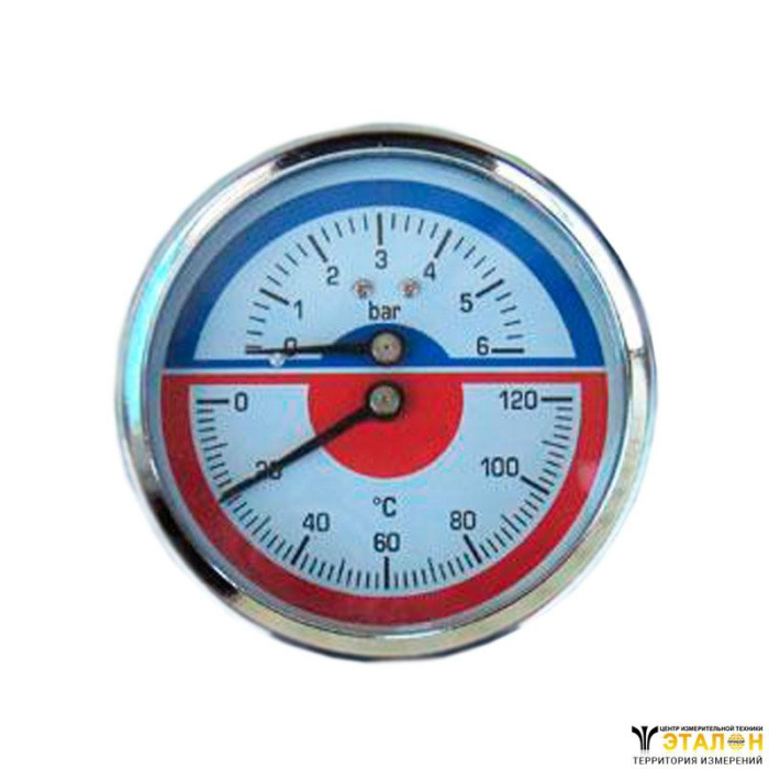 Термоманометр 6 bar/120C осевой (индикатор давления и температуры) предназначен для наблюдения за тенденциями изменения давления и температуры воды и воздуха. Гарантийный срок эксплуатации отображается в сопроводительной документации и составляет от 6 месяцев до 5 лет (в зависимости от типа приборной продукции)