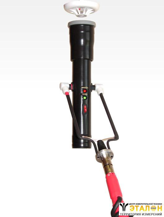 Для выполнения тестирования тепловой пожарный извещатель или его термочувствительная часть покрывается рабочей полостью прибора, что приводит к его нагреву. Регулятор температуры прибора ограничивает ее значение в рабочей полости, предохраняя детали датчика и покрытие потолка от повреждения. Выдача сигнала «Пожар» приемно-контрольным прибором, в шлейф сигнализации которого включен тестируемый тепловой извещатель, свидетельствует о работоспособности последнего.