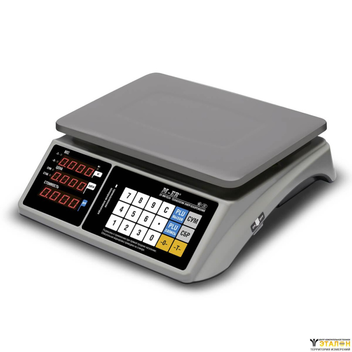 | Режимы работы | Простое взвешивание; Режим суммирования; Работа с запрограммированными ценами; Вычисление сдачи; Счетный режим; Учет веса тары |