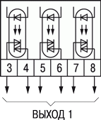 Для управления трехфазной нагрузкой в прибор устанавливается только одно ВУ – три симисторные оптопары, имеющие схему контроля перехода через ноль (модификация по типу выходов С3).