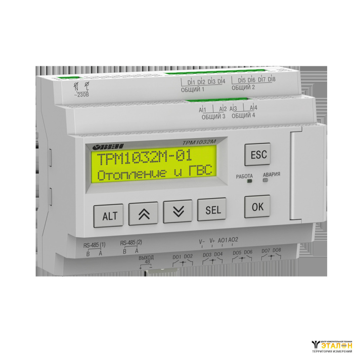 ТРМ1032М – специализированный контроллер с готовыми алгоритмами для поддержания температуры в системах отопления и ГВС. Подходит для применения в ИТП, котельных и ЦТП.