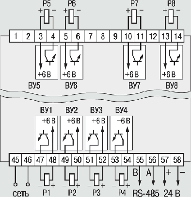 Схема подключения транзисторных оптопар в приборе модификации ТРМ138В-К