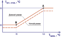 Построение графиков осуществляется прибором автоматически по заданным пользователем координатам точек перегиба - А и В, зависящим от характеристик системы отопления.