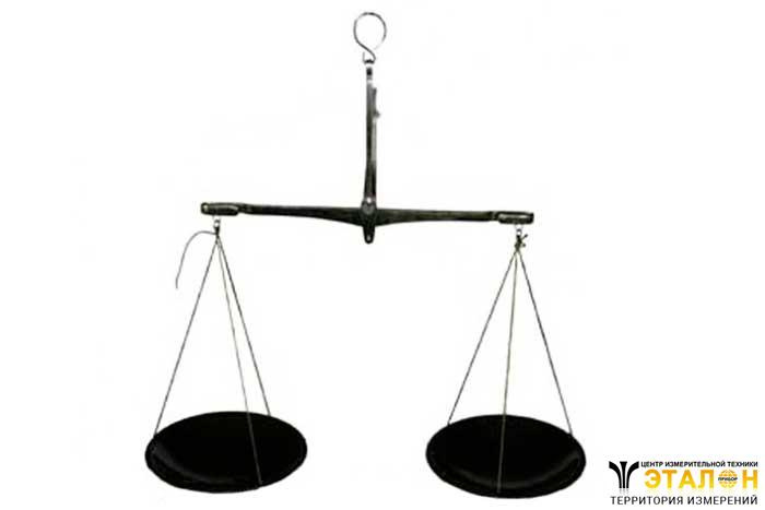 Грузоприемные призмы распложены симметрично по отношению к опорной призме и закреплены в загнутых концах коромысла. В средней части коромысла над опорной призмой припаяна стрелка.