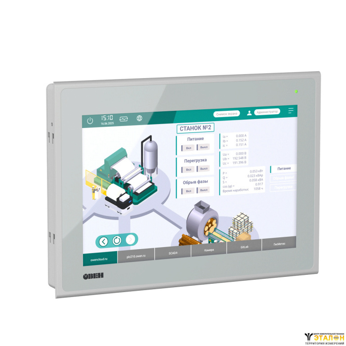 ОВЕН ВП110 – сенсорная панель оператора со встроенным веб-браузером. Предназначена для наглядного отображения веб-визуализации контроллера. ВП110 оснащена встроенным браузером c поддержкой технологии HTML5, который работает с любой веб-страницей. Рекомендуется для совместного применения с ОВЕН ПЛК210, СПК1xx, ПЛК110-MS4 [M02], OwenCloud, а также с любыми устройствами, которые работают как веб-сервер. Подключение web-панели ОВЕН ВП110 происходит по одному из трех интерфейсов связи – Ethernet, Wi-Fi или 3G.