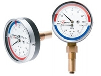 Термоманометры стрелочные, показывающие серии МПТ предназначены для применения в системах водоснабжения, теплоснабжения, а также при монтаже бойлеров и паровых котлов. Термоманометры доступны к заказу в двух вариантах конструктивного исполнения - с радиальным и центрально-осевым расположением присоединительного штуцера и, соответственно, могут быть радиальными или осевыми.