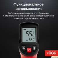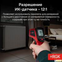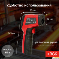 Пирометр RGK PL-7 – профессиональный прибор для бесконтактного измерения температуры, который всегда можно иметь при себе. Рабочий температурный диапазон модели - от -30 до +400 °С, при этом погрешность не превышает ±2 °С, что позволяет быть уверенным в достоверности измерений.