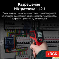 Инфракрасный термометр очень просто навести на цель благодаря яркому лазерному целеуказателю. Он помогает получить точные данные о температуре конкретной детали или отдельного участка поверхности.