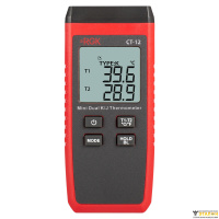 Контактный термометр RGK CT-12 с погружным зондом температуры TR-10W с поверкой - это надежный и точный прибор для измерения температуры в диапазоне от -40°С до +400°С с комплектной термопарой. Погрешность при этот составляет не более ± 1,5 °C. Главное преимущество этой модели - 2 гнезда для подключения выносных датчиков с функцией определения разности между каналами.