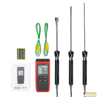 Контактный термометр RGK CT-12 с зондом температуры воздуха TR-10A, поверхностным зондом TR-10S и погружным зондом температуры TR-10W - это надежный и точный прибор для измерения температуры в диапазоне от -40°С до +500°С с комплектной термопарой. Погрешность при этот составляет не более ± 1,5 °C. Главное преимущество этой модели - 2 гнезда для подключения выносных датчиков с функцией определения разности между каналами.