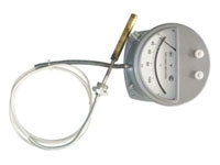 Манометрическая термосистема состоит из термобаллона, дистанционного капилляра и манометрической пружины. Под воздействием температуры изменяется давление внутри манометрической системы, происходит раскрутка манометрической пружины, связанной со стрелкой отс четно го устройства.